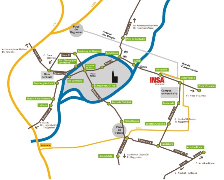 Accès par l’autoroute A4 depuis Paris et A35 depuis Belfort. Sortie 4, Strasbourg, Parc de l’étoile.